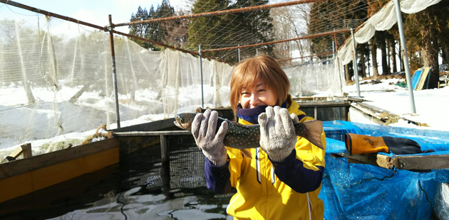 春先から夏過ぎまでには稚魚を通常の飼育流に入れ、通常管理を行います。11月に入るとメスが産卵期に入るため、卵に養分をとられ味が落ちることと、採卵用の大きなメスと多少大きなオスについては出荷を控え、残った大き目のオスと塩焼き刺身用のオスのみの出荷となりますことにつきましてはご了承ください。